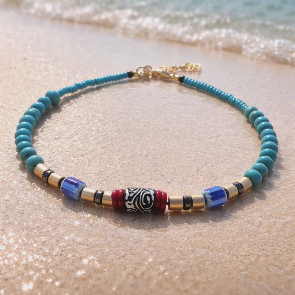 Turcoaz natural, coral, margele Miyuki, safir si os
